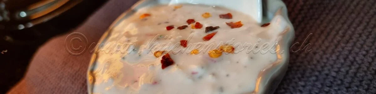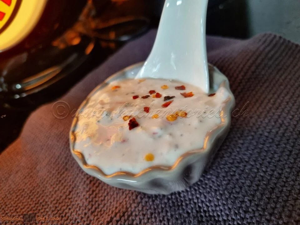 Da für’s Abendessen Fleischkäse und Weisskabissalat mit Speckwürfeln geplant war, ersetzte diese Creme den sonst gerne verwendeten Senf dazu.