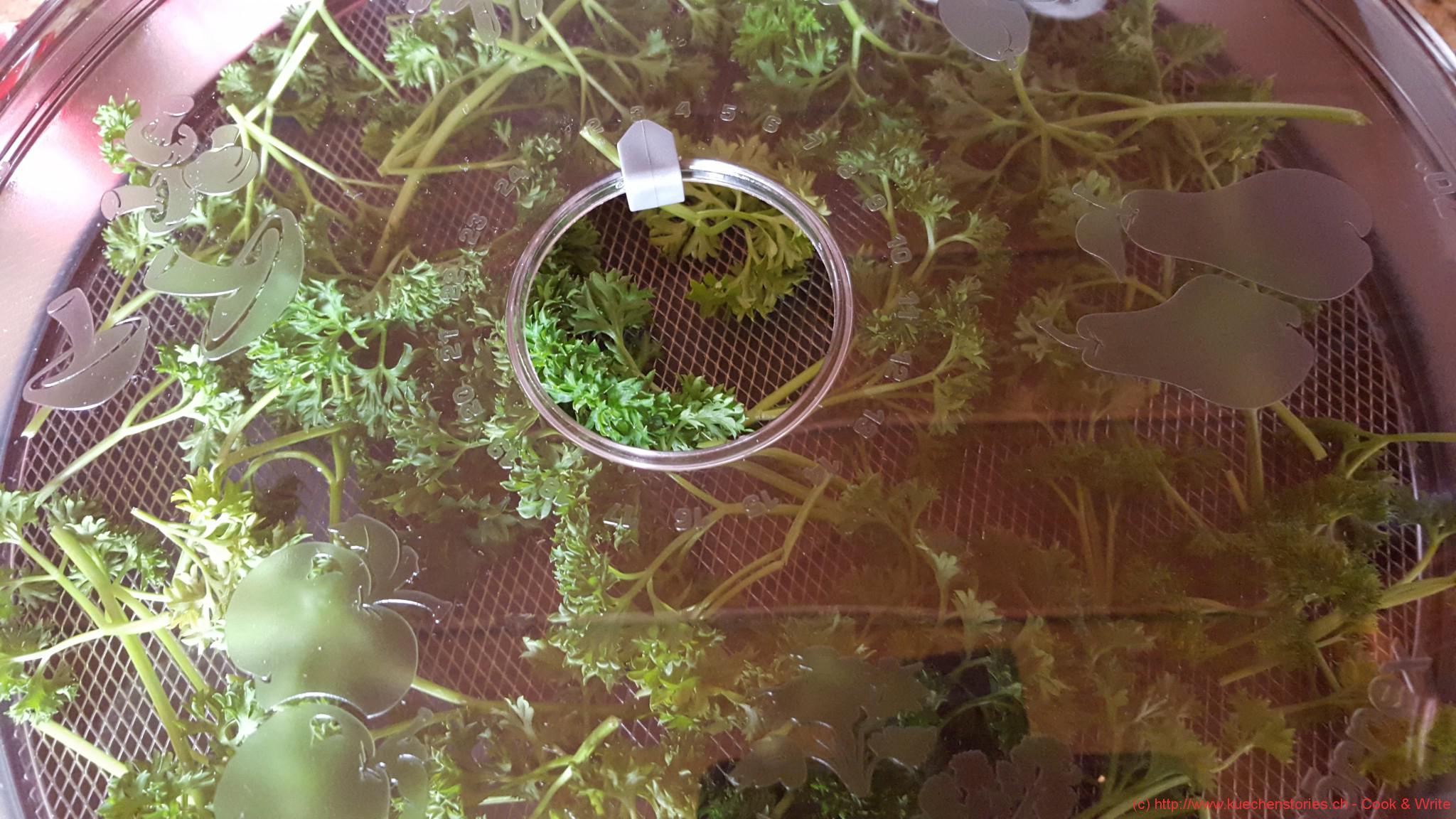 Das erste „Experiment“ war ganz simpel, ich habe Petersilie getrocknet, da mir diese gerade ausgegangen war. Was mich gleich auf Anhieb sehr positiv überrascht hat war die Lautstärke. Das Gerät arbeitet sehr leise und das ist in Anbetracht dessen, dass es oftmals ja für einige Stunden in Betrieb ist, eine tolle Sache.