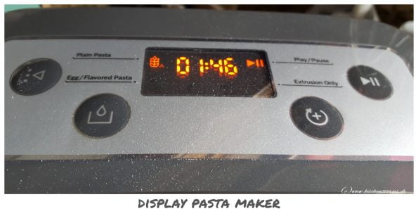 - Mittels der linken Taste (Plain/Pasta) ausgewählt, welche Pastasorte ich herstellen möchte – in diesem Falle also Pasta mit Wasser